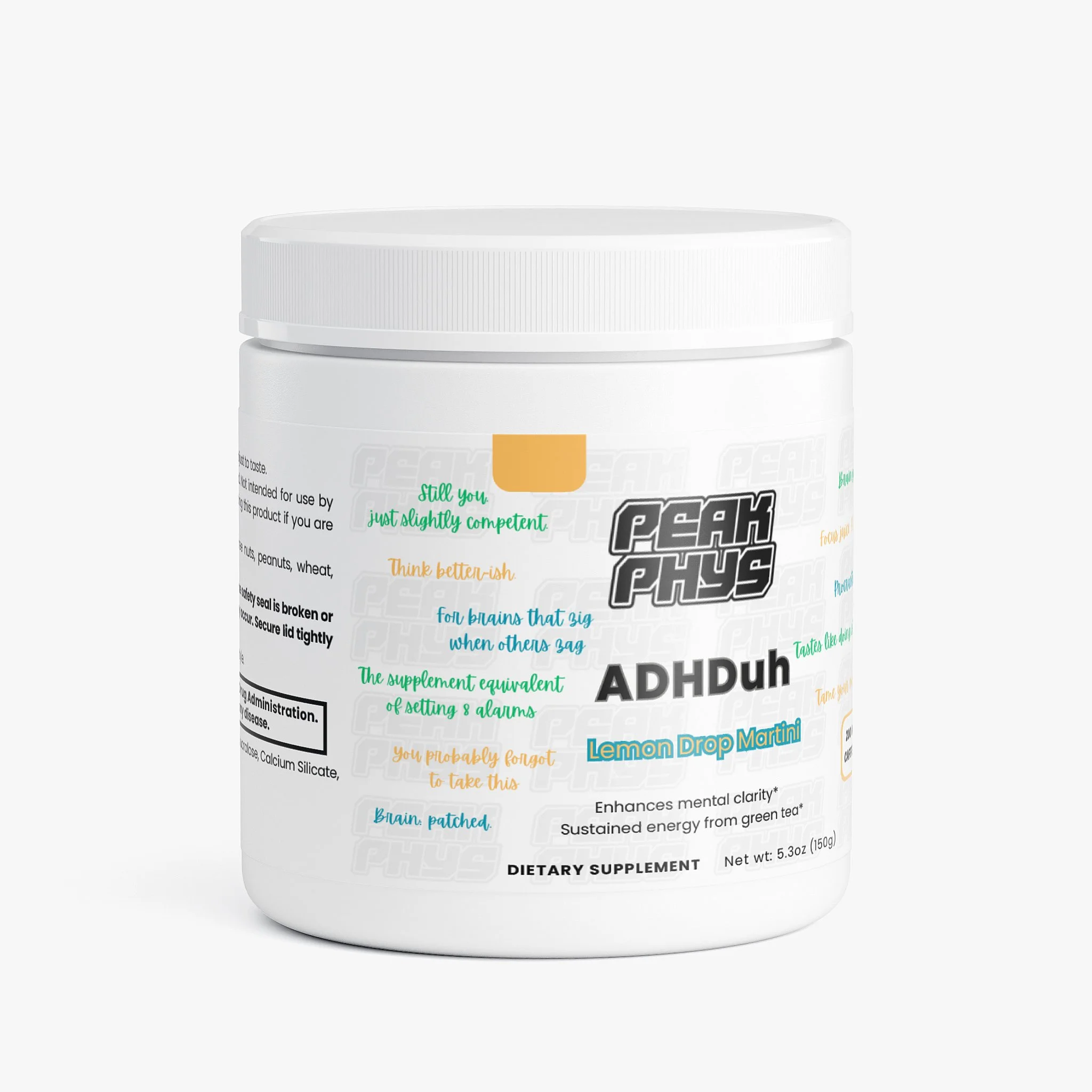 Boost focus and mental clarity with ADHDuh by Peak Physique Nutraceuticals, a cognitive support supplement designed to help maintain attention, enhance memory, and sustain mental energy. Featuring Alpha-GPC for brain health, this formula combines L-Theanine and natural caffeine to promote alertness and concentration without the jitters or crashes. Asian Ginseng and L-Arginine support healthy blood flow, helping manage occasional fatigue and optimize overall cognitive performance.