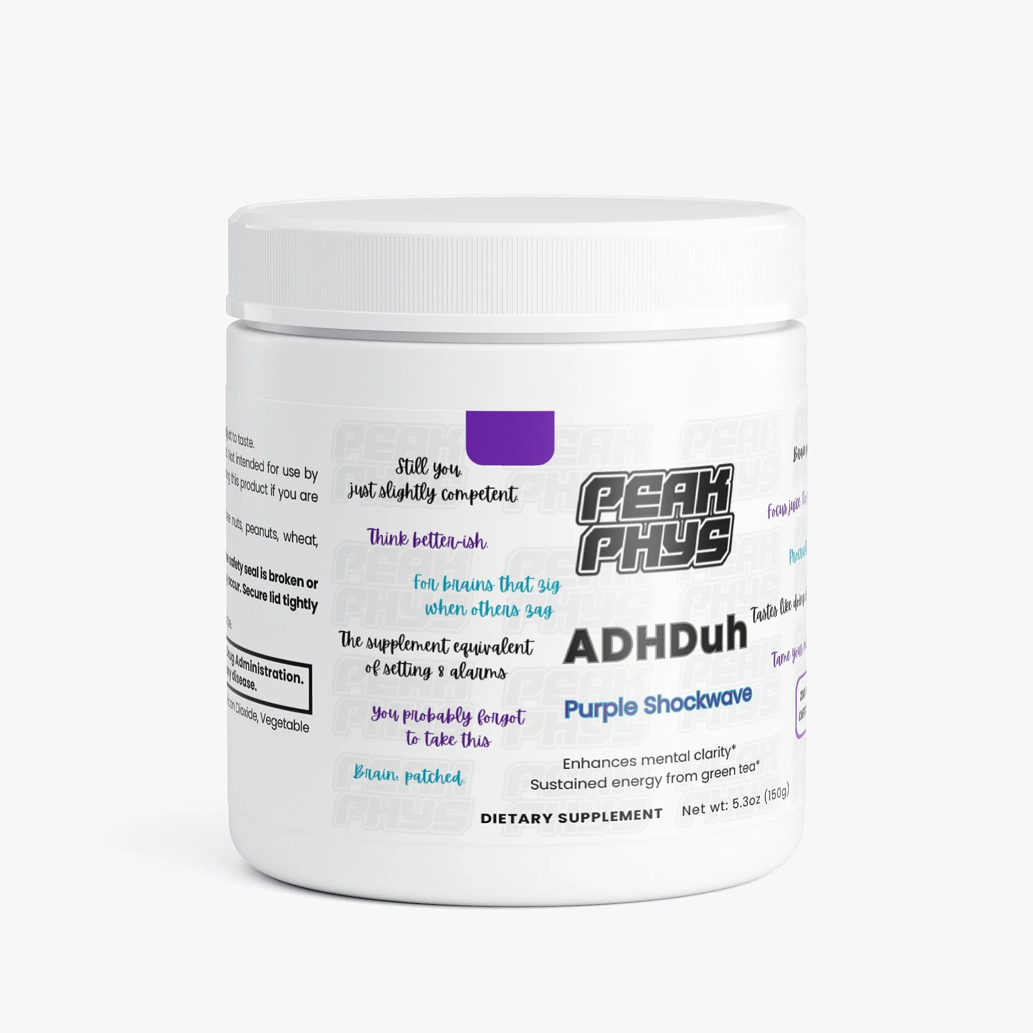 Boost focus and mental clarity with ADHDuh by Peak Physique Nutraceuticals, a cognitive support supplement designed to help maintain attention, enhance memory, and sustain mental energy. Featuring Alpha-GPC for brain health, this formula combines L-Theanine and natural caffeine to promote alertness and concentration without the jitters or crashes. Asian Ginseng and L-Arginine support healthy blood flow, helping manage occasional fatigue and optimize overall cognitive performance.